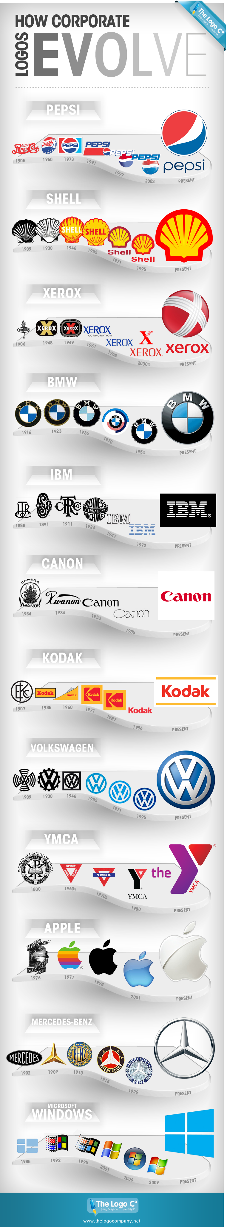 Celle qui nous intéresse retrace l’évolution de 12 logos de célèbres marques (Pepsi, Apple, IBM, Mercedes…) des débuts de la firme, avec les toutes premières ébauches de logos, jusqu’à ceux utilisés aujourd’hui. Pour certains le changement est flagrant. Pour d’autres il y a eu beaucoup d’améliorations au fil du temps. Découvrez-les ! ;) Et voici le lien pour accéder à l’image entière.