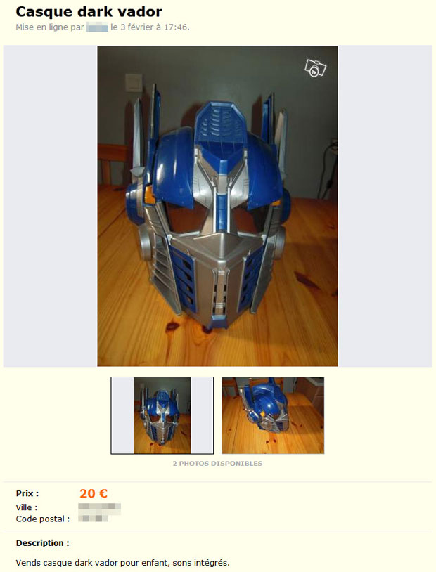 “Je vends un Galaxy S3 volé à Barbès. Peu servi. Pour ma localisation je ne veux pas me faire repérer, je vous donnerai un numéro, pas de souci, mais faites vite, j’ai besoin d’argent parce que mon frère Kader est en prison et en a besoin. Si vous désirez un téléphone en particulier je peux vous avoir ça pour moins de 100 €“.