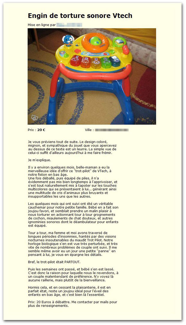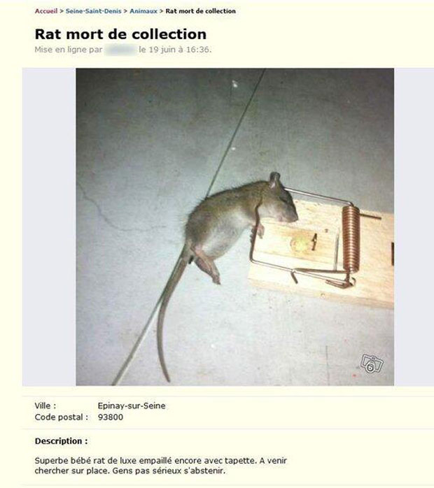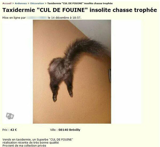 Entre les ventes d’animaux empaillés ou d’animaux qui prennent trop de place dans la maison, les fautes d’orthographes bien placées, des photos compromettantes ou des personnes qui vendent leurs services directement sur le site, il y a vraiment de quoi se payer une bonne dose de rigolade !