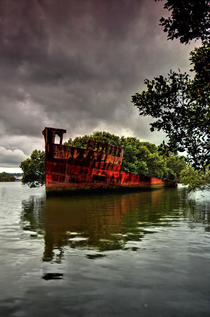 Un joli contraste entre la vie qu’apporte cette forêt et la mort que ce bateau tout rouillé représente. Que vous inspire ce bateau ?
