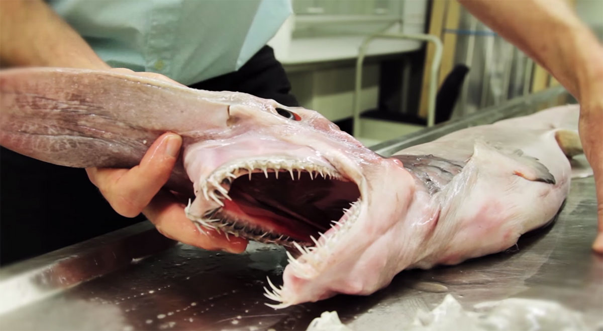 “L’Alien des abîmes” est une créature préhistorique très rare. Un spécimen exceptionnel de cette espèce étonnante a été pêché au large de l’Australie. Ce requin-lutin qui vit dans les profondeurs, a un nez aplati, un corps rose flasque et des dents très pointues. Le requin recueilli par l’Australian Museum vient de rejoindre 3 de ses confrères dans l’enceinte du musée. SooCurious vous en dit plus sur cette créature rare et fascinante.