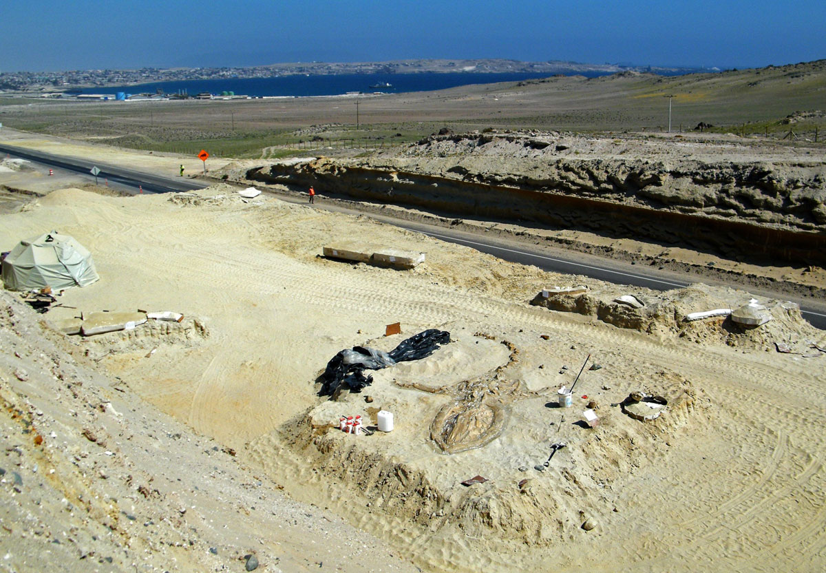 Pyenson et son équipe ont étudié un véritable “cimetière” de baleines fossiles retrouvé dans le désert de l’Atacama au Chili, ces dernières s’étant échouées successivement au même endroit pendant au moins cinq millions d’années. Tout comme Farewell Spit, quelque chose faisait que les baleines venaient s’échouer là. Cependant, comme l’affirme Pyenson, ces baleines étaient déjà mortes au moment de leur échouage. Son équipe suspecte ces cétacés d’être morts d’une intoxication aux algues. Ces dernières peuvent en effet contenir une grande quantité d’oxyde de fer toxique, cette substance ayant été retrouvée avec les fossiles : ingérée par les proies des baleines avec les algues, la substance aurait remonté la chaîne alimentaire et intoxiqué les grands mammifères, leurs corps peu éloignés du rivage ayant ensuite été entrainés sur la grève. Heureusement, de telles efflorescences d’algues marines gorgées de fer sont rares.