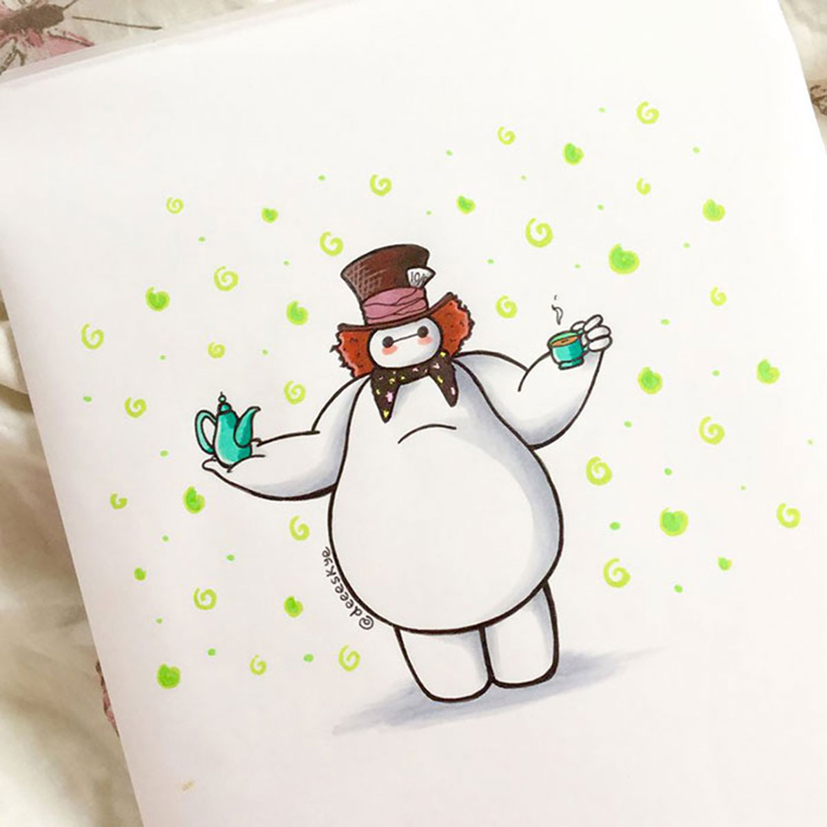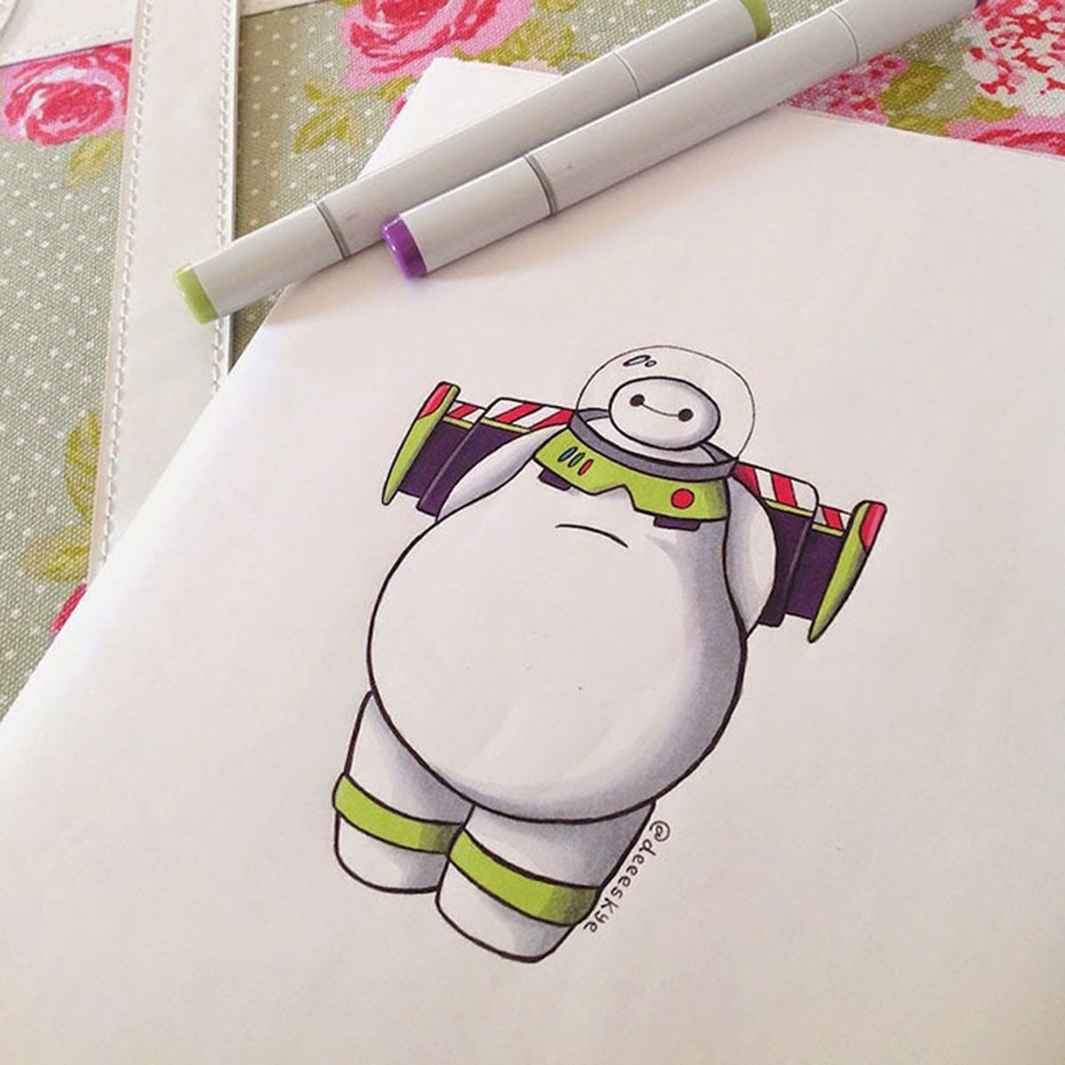Malgré son jeune âge, Demetria est une artiste qui ne manque pas de talent ! À la rédaction, cette série d’adorables créations a eu énormément de succès. Nos mises en scène préférées sont Baymax en Chapelier Fou et Baymax en Génie d’Aladin. Quel dessin préférez-vous ?