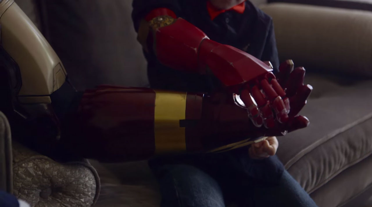 Limbitless Solutions fonctionne en effet grâce à des dons, et avec cet argent, les étudiants ingénieurs membres de l’association, sous la direction d’Albert Manero, passent entre 30 et 50 heures à utiliser une imprimante 3D à l’université de Floride. La prothèse Iron Man a été réalisée pour un petit garçon de 7 ans passionné de super-héros, Alex, qui est né avec un bras totalement atrophié. Alex avait déjà reçu une prothèse de bras Optimus Prime (du film Transformers), mais il était temps qu’il en ait une nouvelle. Le projet a d’ailleurs attiré l’attention de l’acteur Robert Downey Jr. qui joue Tony Stark alias Iron Man dans les films éponymes, et c’est ce dernier qui a fait le cadeau au petit garçon.