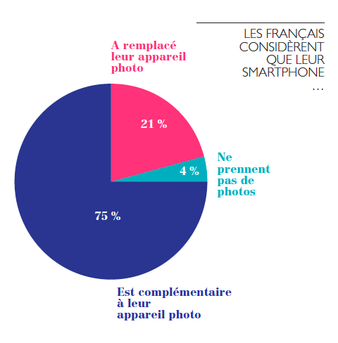 En 10 ans, le nombre de clichés pris dans le monde entier a été multiplié par 10 grâce à la démocratisation des divers objets connectés qui permettent de prendre des photographies. D’ailleurs, les Français considèrent à 96 % que leur téléphone mobile est complémentaire voire qu’il a entièrement remplacé leur appareil photo. En bref, les smartphones font exploser le marché de la photographie.