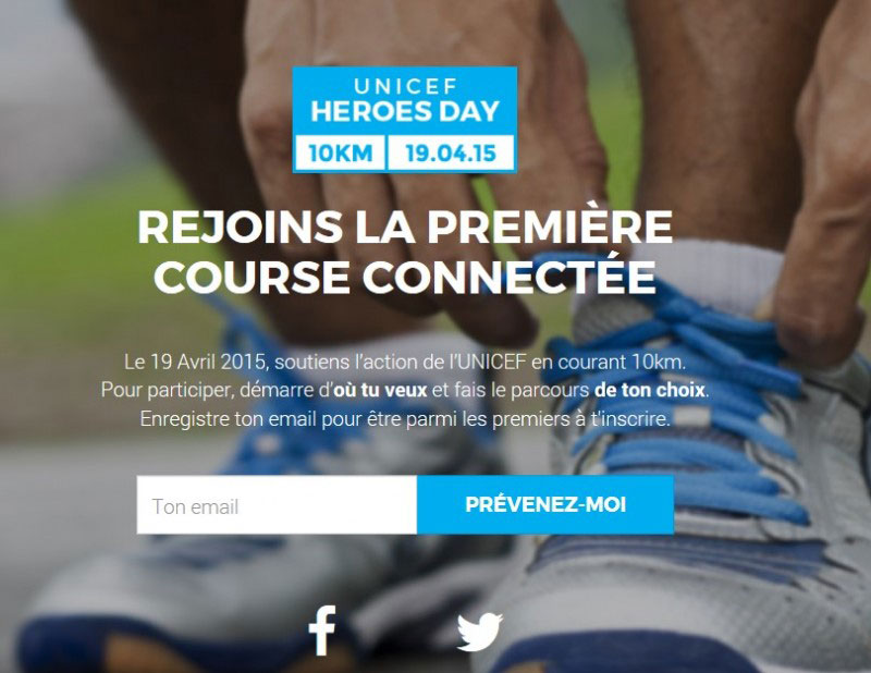 Pour participer à cet effort solidaire, il suffira de vous inscrire par équipes de 4 sur le site www.unicefheroesday.com. Trois niveaux de dons sont proposés : 5 € (participation à la course), 15 € (la participation et une paire de lacets bleus UNICEF) et 35 € (la participation, une paire de lacets UNICEF et un T-shirt officiel de la course). De plus, 75 % des dépenses effectuées peuvent être déduites des impôts, une inscription à 35 € revenant donc à 9 €.