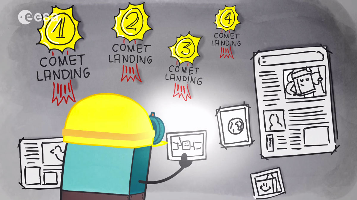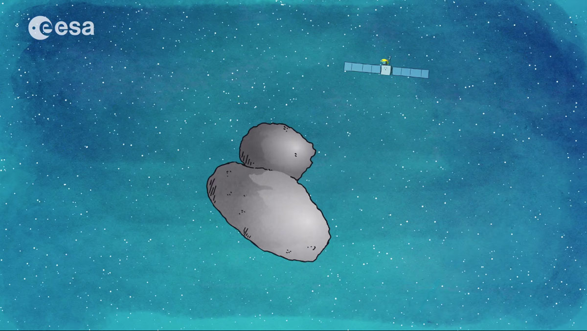 L’homme a déjà envoyé des sondes se poser directement à la surface de Mercure, de Vénus, de la Lune, de Mars et même de la plus grande lune de Saturne, Titan. Pourtant c’est un exploit encore plus grand que Rosetta a réalisé l’année dernière en posant le module Philae à la surface de la comète 67P-Churyumov-Gerasimenko. La très faible masse de l’astre a rendu la manoeuvre compliquée, ce qui implique qu’il n’attire presque rien à lui, à tel point que Philae a “rebondi” à sa surface et a failli se ré-envoler ! Heureusement, le petit module a pu se fixer et effectuer toutes les analyses nécessaires. Le court-métrage animé mis en ligne par l’Agence spatiale européenne permet d’ailleurs d’expliquer à tout le monde les grands principes de cet exploit.