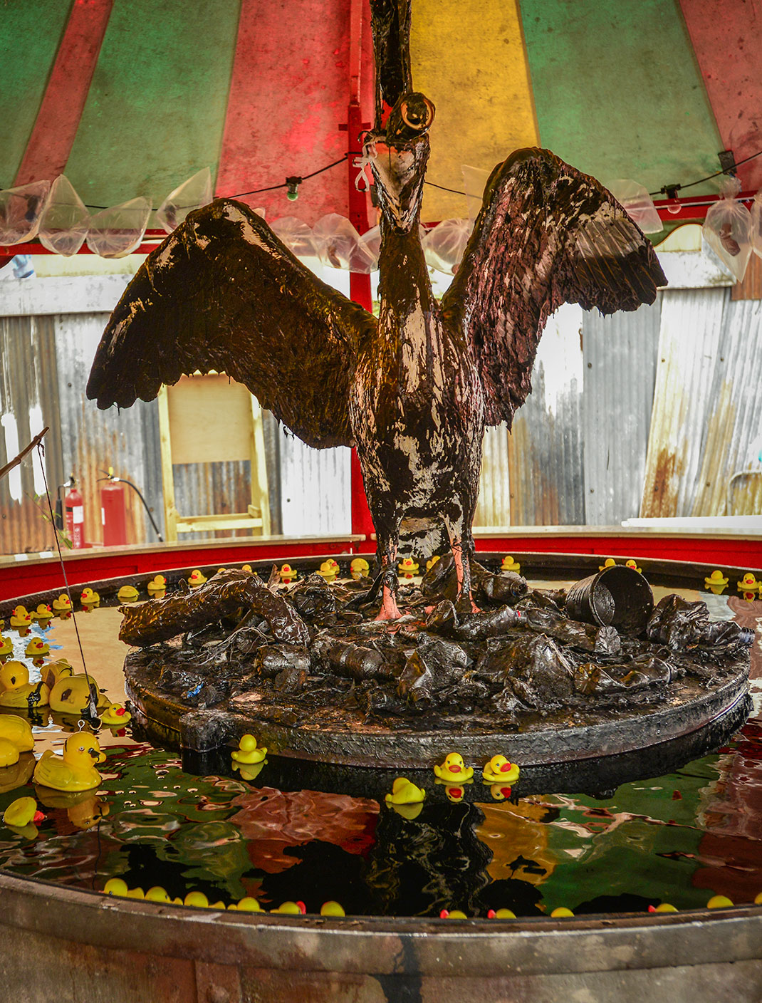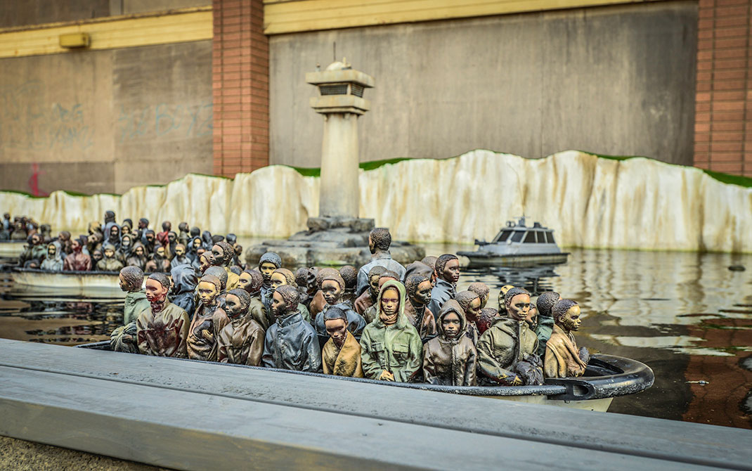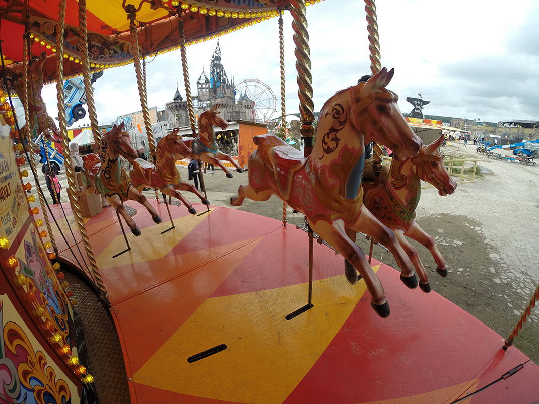 Situé à quelques kilomètres de la ville de Bristol en Angleterre, “Dismaland” (un mélange de “lugubre” et de Disneyland) est une version sombre et sinistre du fameux parc de Mickey. L’ensemble de l’oeuvre regroupe des créations d’artistes choisis par Banksy, comme Darren Cullen, Josh Keyes ou encore Bill Barminski.