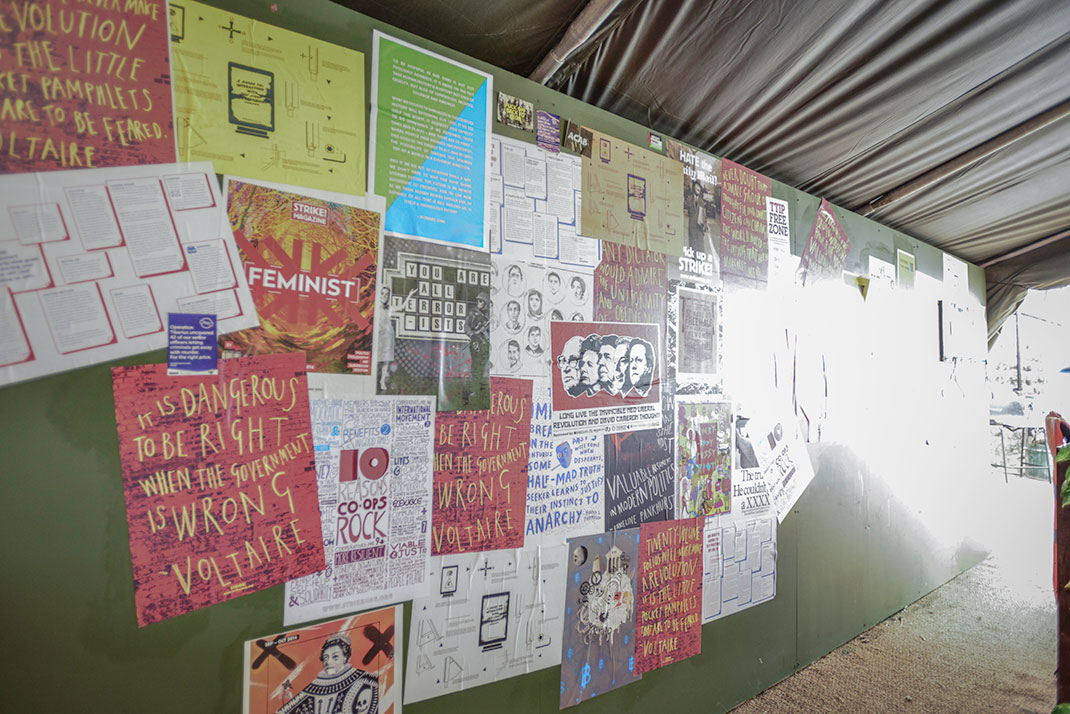 Les visiteurs de “Dismaland” sont accueillis par un personnel totalement déprimé, ils peuvent y admirer de nombreuses expositions réalisées sur le thème de la satire sociale. Des oeuvres plus explicites, telles qu’un toboggan sorti tout droit d’un camion de police ou une orque effectuant un spectacle avec de simples toilettes comme bassin, sont placées à travers le parc. Enfin, la version totalement délabrée du fameux château de Disneyland représente parfaitement l’idée véhiculée par “Dismaland”.