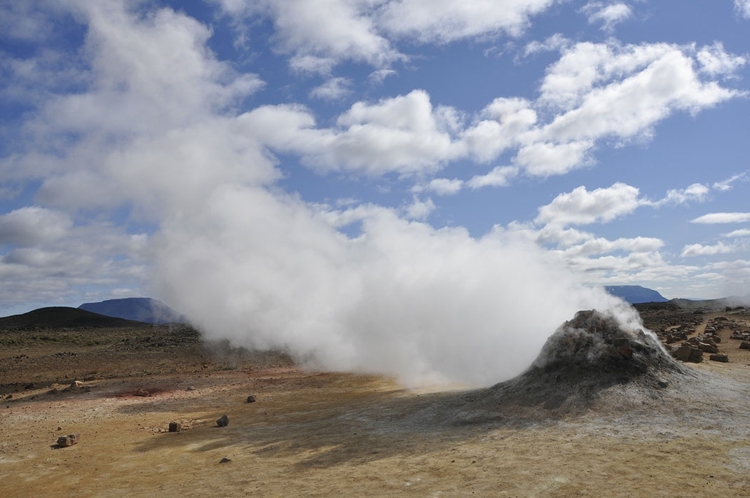 De la vapeur d’eau s’échappe d’un geyser en Islande