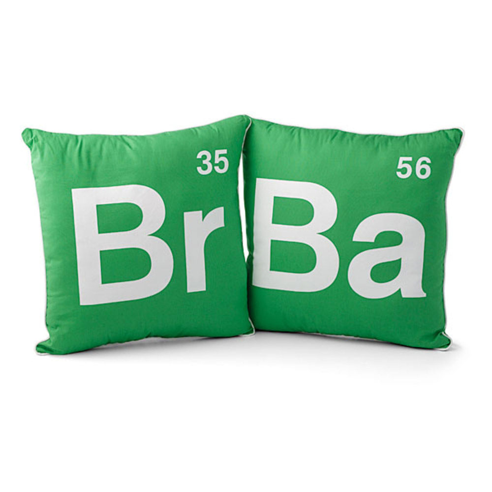 Faites de doux rêves posé sur ces oreillers tout droit sortis du tableau périodique des éléments ! Choisissez entre le Br(eaking) ou le Ba(d) pour seulement 18 €.