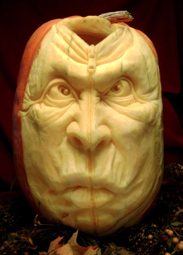 Ce n’est pas dans nos rues que l’on verrait de telles citrouilles ! Ray Villafane est un professeur d’art américain, qui a pour passion la sculpture de citrouilles. Depuis quelques années, il transforme pour la fête d’Halloween ces grosses cucurbitacées en véritables monstres, tous plus effrayants les uns que les autres. En moyenne, cela ne lui prend que deux heures pour sculpter une citrouille simplement à l’aide de cuillères et d’un scalpel ! La plus délicate à faire, celle de la citrouille zippée, ne lui a pris qu’une seule journée. Découvrez sans plus attendre ses oeuvres à couper le souffle !