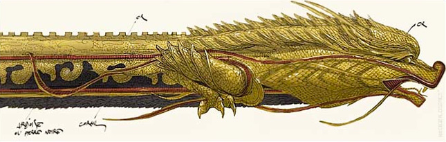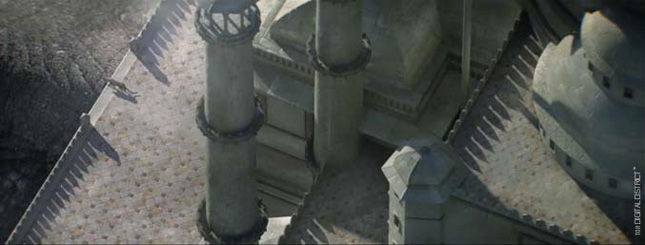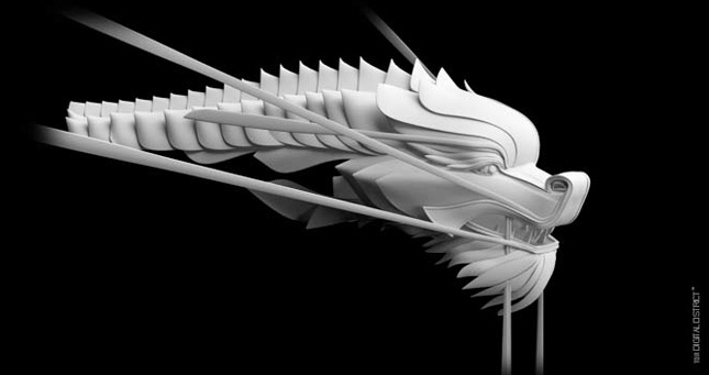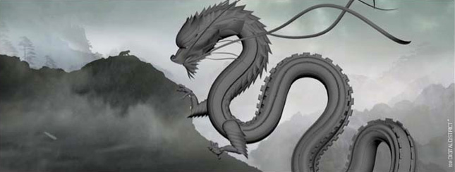 Deuxième scène vraiment impressionnante et vrai défi pour l’équipe : le « tête à tête avec le dragon céleste». Ils ont longuement travaillé pour réussir à donner vie à un dragon, orné de superbes couleurs et matières précieuses, imaginé par le réalisateur. Celui-ci fait référence à la collection « Chimera » de Cartier. Digital District a donc dû combiner un effet de sculpture en bois, avec une texture en or et l’aspect de fluidité, afin que celui-ci puisse incarner la divinité. Cette fois aussi, c’est un travail tout à fait réussi.