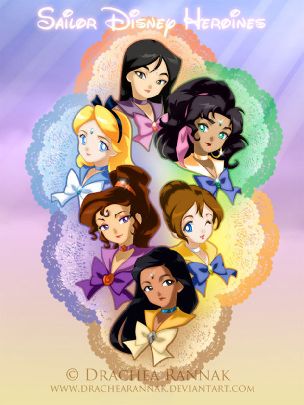Quand Disney rencontre une icône de l’animation japonaise, Sailor Moon, le résultat est incroyable ! Découvrez la vision de l’artiste Drachea Rannak qui métamorphose les héroïnes de Disney en Sailor Moon !