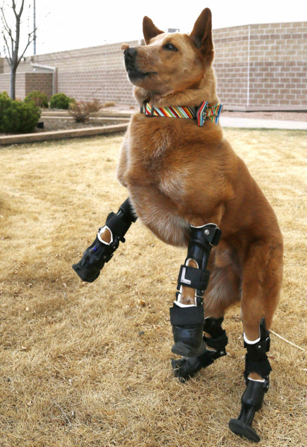 Le vétérinaire qui l’a recueilli, Christie Pace, explique “J’ai un point faible pour le sauvetage des animaux en général. Je recherchais quelque chose de différent, d’unique. […] Je savais que je pouvais l’aider.” Elle mis donc en place une collecte de dons pour le chien afin de lui offrir les prothèses lui permettant de marcher à nouveau. Au final elle n’a récolté que suffisamment d’argent pour les prothèses des pattes arrières (qui coûtent entre 700 et 2400 euro). Mais la compagnie qui fabrique les prothèses a été émue par ce chien et a fourni les deux prothèses restantes pour que le chien puisse se tenir sur ses 4 pattes.