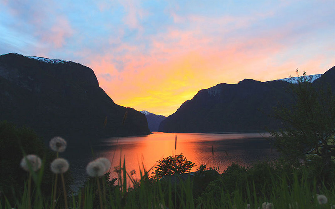 Soleil d’été dans le pittoresque Aurlandsfjord