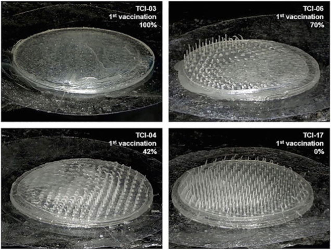 Dans un premier temps toutes les aiguilles sont dirigées vers le haut car il est hautement magnifié, et à la fin de l’”injection”, le patch est complètement lisse. Les aiguilles se dissolvent lorsqu’elles sont exposées à l’eau des cellules de la peau, vous êtes ainsi vacciné sans aucune douleur du tout. Lorsqu’ils ont utilisé le MicroHyala (le nom attribué au patch) l’équipe a intégré le vaccin contre la grippe, et il a été tout aussi efficace que l’utilisation d’aiguilles. De plus il ne s’agit pas d’une de ces technologies lointaines et encore abstraites, les médecins ont déjà testé le patch sur les humains, et les résultats sont excellents : il laisse une petite marque rouge pendant quelques jours, puis disparaît complètement. Il peut même être administré sans aucune formation. « Ce vaccin sera particulièrement efficace pour encourager la vaccination dans les pays en voie de développement », explique le biotechnologiste Shinsaku Nakagawa, un des auteurs de l’étude. Le plus important c’est qu’il sera beaucoup plus facile pour tout un chacun de se faire vacciner sans appréhender la douleur. Un vrai soulagement.