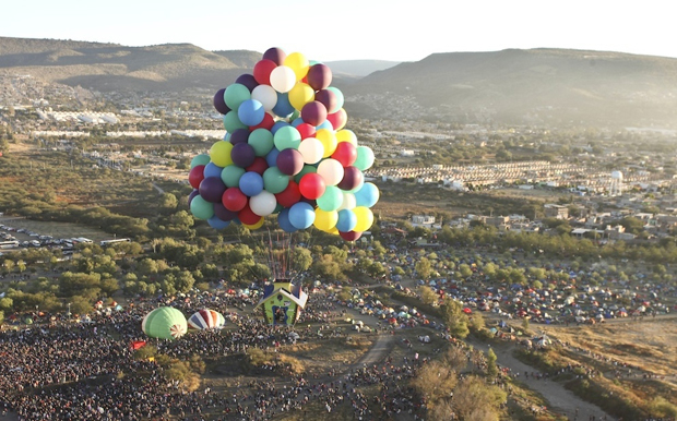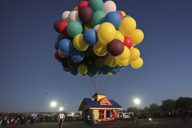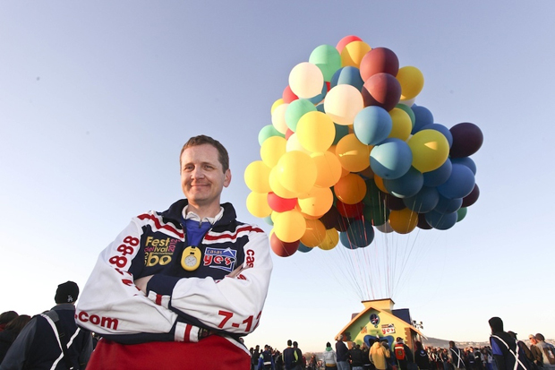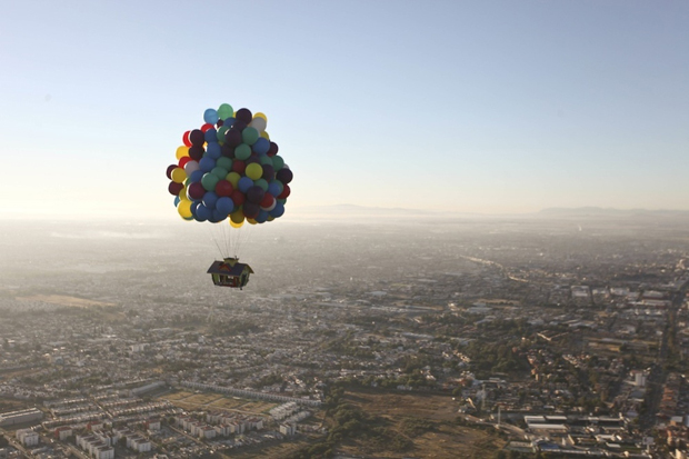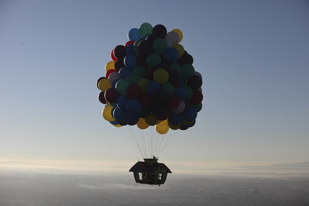 Le film Là-Haut des studios Pixar nous avait tous émerveillé il y a déjà 3 ans, grâce à sa maison soulevée dans les airs par des milliers de ballons. L’américain Jonathan Trappe, déjà célèbre pour avoir traversé la Manche grâce à des ballons en hélium, est revenu sur le devant de la scène le 19 novembre dernier. Et il compte bien imiter le vieux Carl Fredricksen, héros du film d’animation.