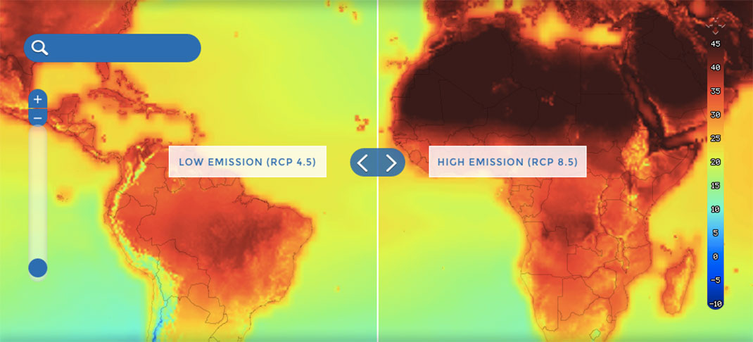 Le dernier compilateur de données terrestres créé par la NASA (NEX) en Californie a récolté des données qui montrent les changements prévus dans le monde entier en réponse à la hausse des niveaux de dioxyde de carbone, qui peuvent être visualisés sur une échelle de temps par jour pour chaque ville. La NASA affirme que les données aideront les scientifiques et les meilleurs planificateurs à comprendre les risques auxquels la planète sera confrontée en raison du changement climatique. Il peut aussi leur permettre de mieux planifier les aléas climatiques tels que la sécheresse, les inondations, les vagues de chaleur et les pertes de productivité agricole.