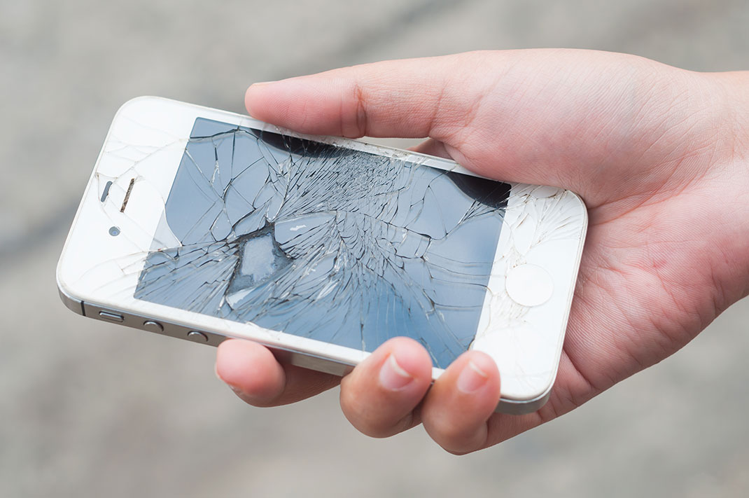 Un téléphone fissuré via Shutterstock