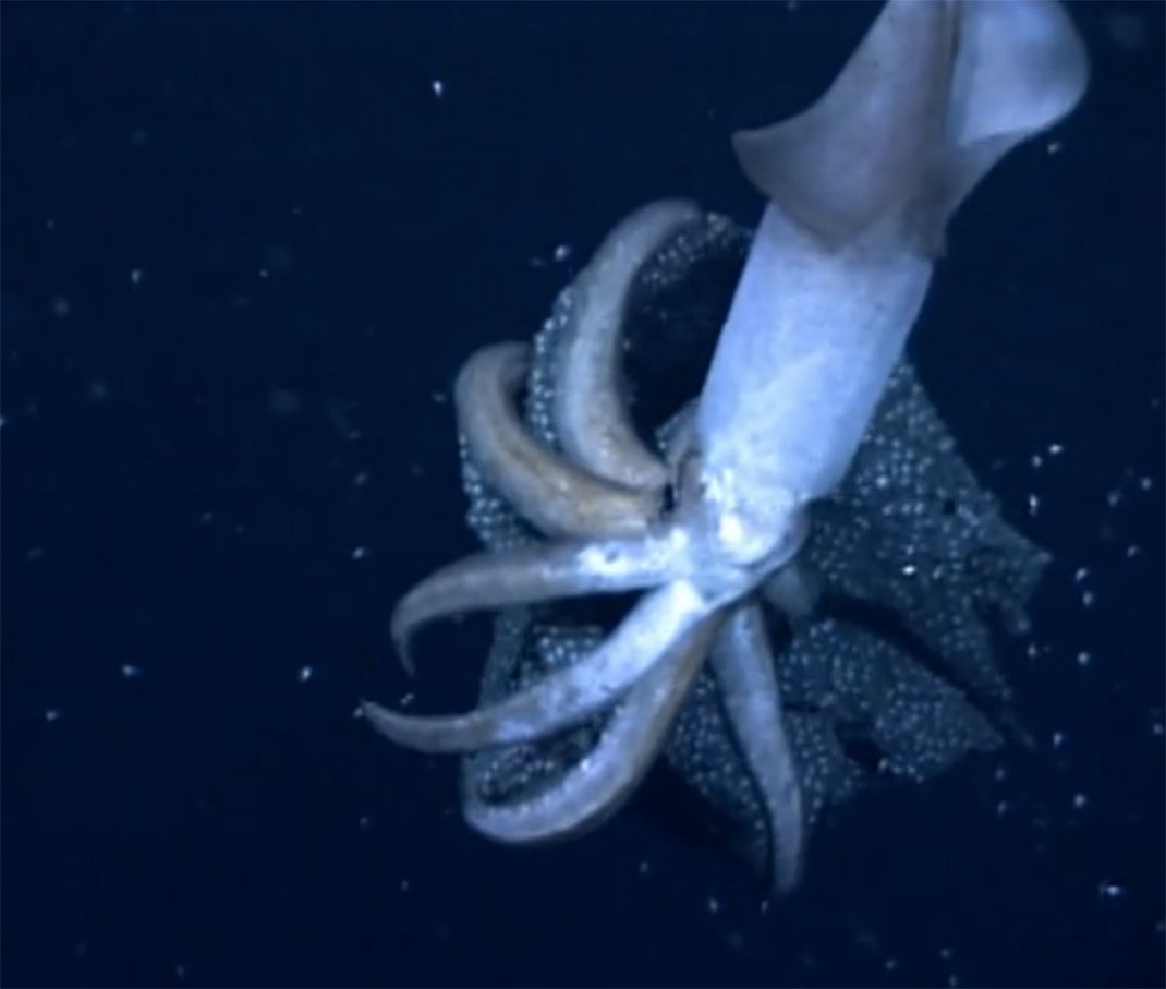 La dispersion de ces oeufs de calmar dans l’océan est un spectacle de toute beauté