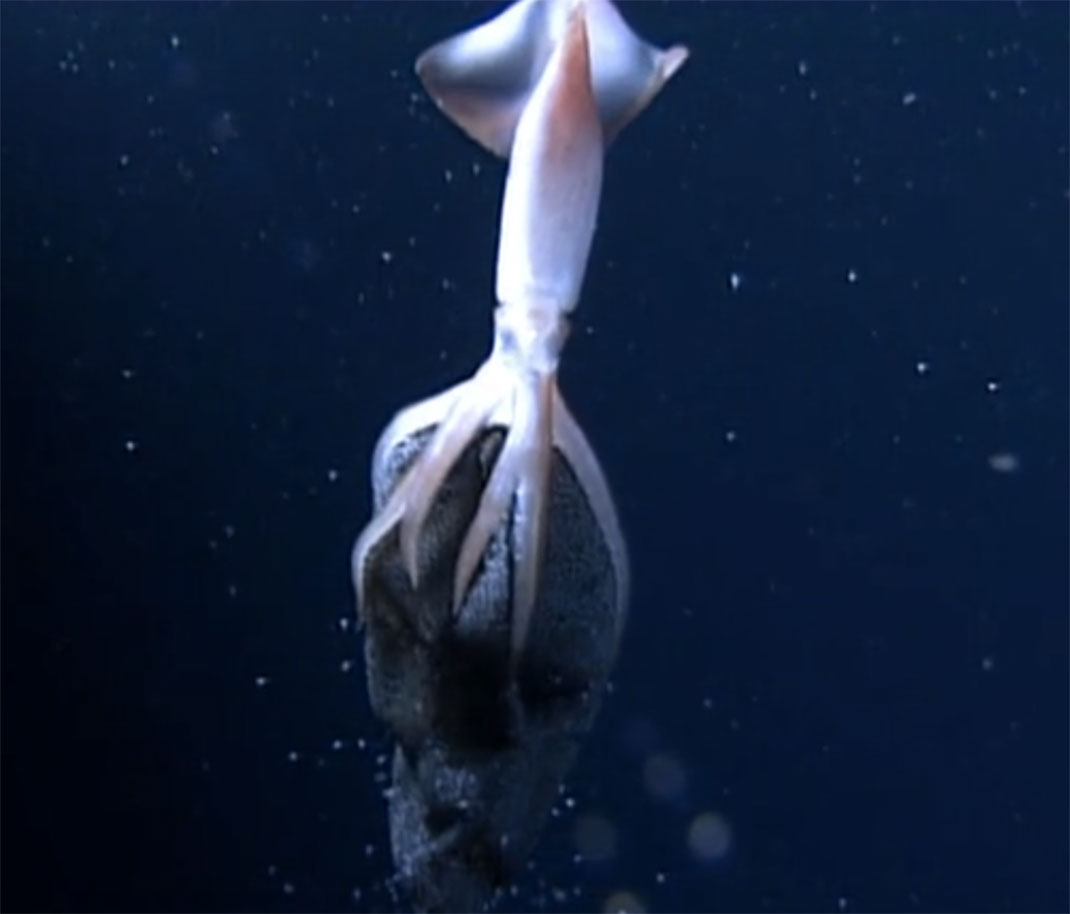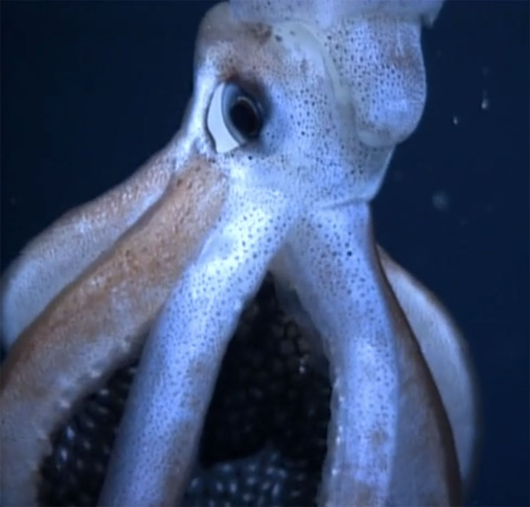Cette vidéo magnifique vous montre la dispersion des œufs de calmar, libérés par milliers dans les profondeurs de l’océan. Le spécimen présenté est un calmar aux yeux noirs dont la femelle porte ses milliers d’œufs dans une poche durant 6 à 9 mois puis les pond dans les profondeurs. SooCurious vous fait découvrir ce merveilleux spectacle dans les abysses océaniques.