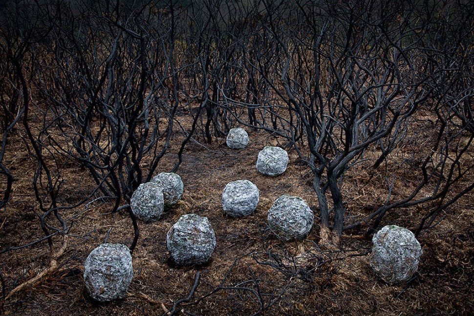 Ellie Davies est une talentueuse artiste multimédia britannique qui a passé sept ans à déambuler dans les plus beaux paysages du Royaume-Uni pour faire parler son art. En introduisant des éléments subtils (parfois pas si subtils que cela) à ces paysages, elle parvient à transformer ces derniers en lieux de méditation qui font réfléchir sur notre approche des paysages au sein desquels nous grandissons et vivons. “La forêt représente la confluence de la nature, la culture et l’activité humaine”, écrit Davies sur son site web. “Les forêts sont des symboles puissants que ce soit dans les contes de fées ou dans les mythes. Ce sont des lieux d’enchantement, de magie mais aussi de danger et de mystère. Dans l’histoire plus récente, elles ont été associées à des états psychologiques relatifs à l’inconscient. Dans ce contexte, mon travail consiste à explorer les façons dont l’identité est formée à travers les paysages dans lesquels nous grandissons et vivons.”