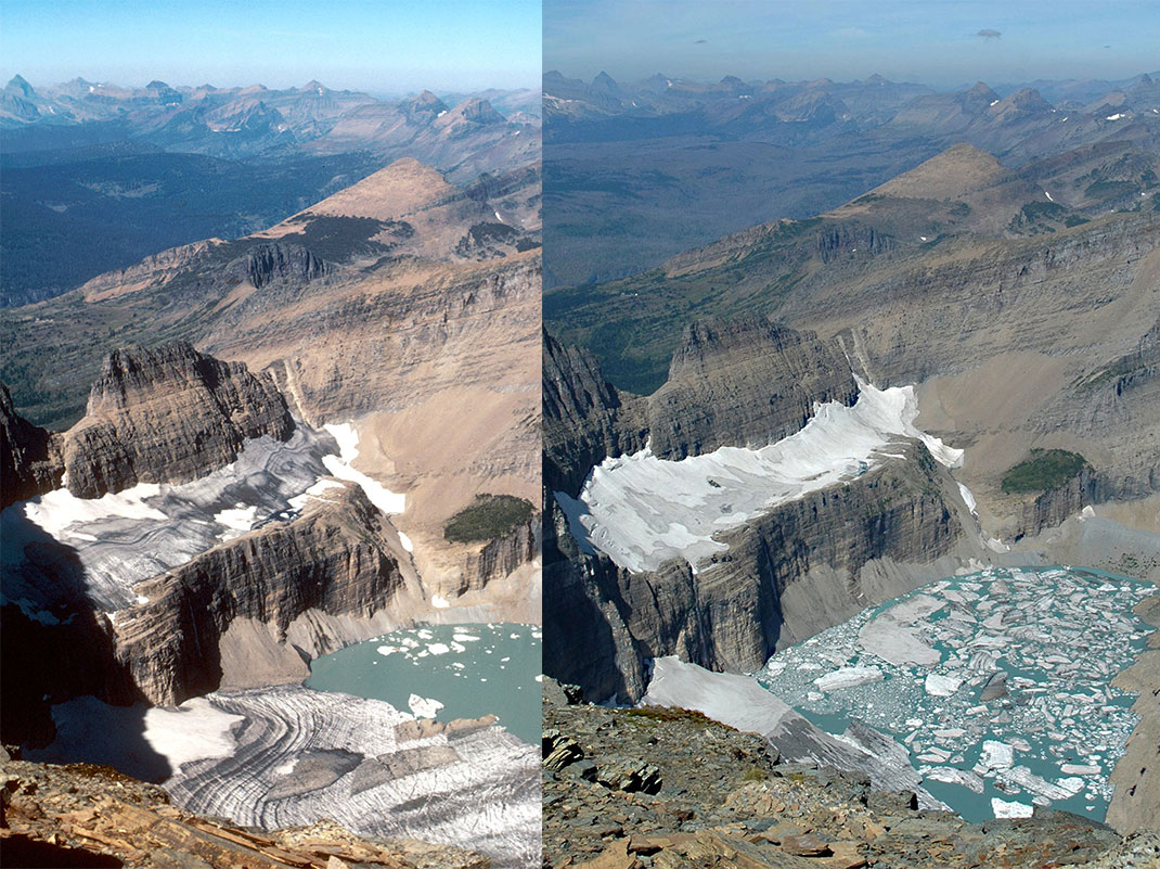 Le parc national des Glaciers au Canada (Le glacier Grinnell en 1981 puis en 2009)